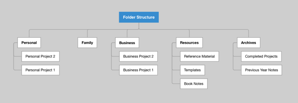 Let’s look at the PARA example I mentioned above. PARA is a folder system for organizing your files, notes, or anything else.